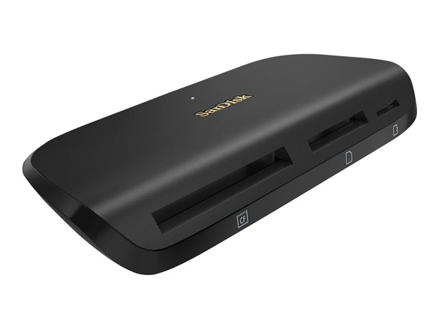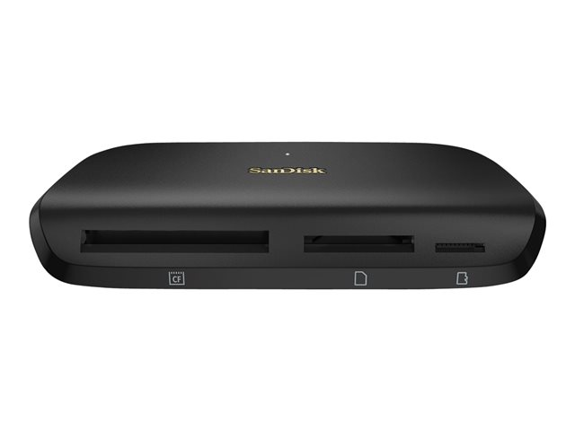 Le lecteur/graveur multi-cartes SanDisk ImageMate PRO fonctionne avec les cartes SD et microSD, ainsi que les cartes CompactFlash. Il offre des vitesses de transfert s'élevant jusqu'à 312 Mo/s pour les cartes SD et microSD, et jusqu'à 160 Mo/s pour les cartes CompactFlash, et dispose d'une interface USB 3.0 pouvant déplacer du contenu jusqu'à 10x plus rapidement qu'une interface USB 2.0.