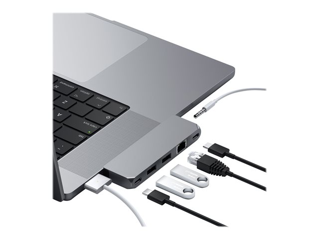 Description du produit Satechi Pro Hub Mini - station d'accueil - USB-C x 2 - USB4 - 1GbE Type de Produit Station d'accueil Interface de station d'accueil USB-C x 2 Interfaces vidéo USB4 Dimensions (LxPxH) 10.1 cm x 3.81 cm x 1.19 cm Couleur Gris sidéral Réseaux Gigabit Ethernet Garantie du fabricant 1 an de garantie -