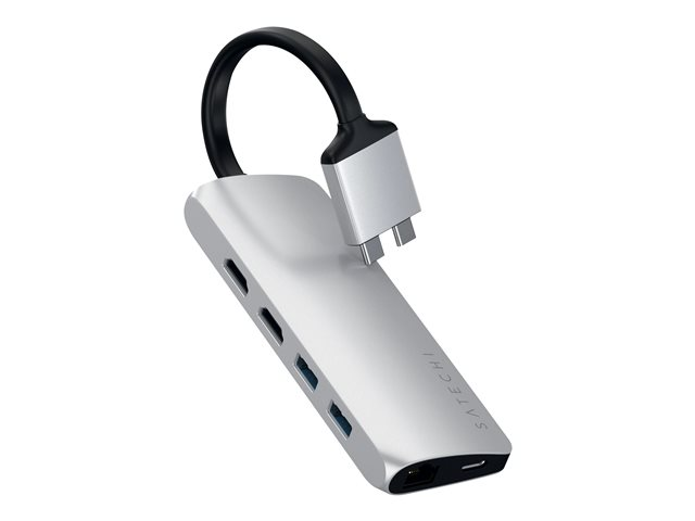 Description du produit Satechi ST-TCDMMAS DUAL MULTIMEDIA ADAPTER - station d'accueil - USB-C - 2 x HDMI - 1GbE Type de Produit Station d'accueil Interface de station d'accueil USB-C Interfaces vidéo 2 x HDMI Dimensions (LxPxH) 12.5 cm x 4.93 cm x 1.91 cm Poids 102 g Couleur Argent Réseaux Gigabit Ethernet Garantie du fabricant 1 an de garantie -