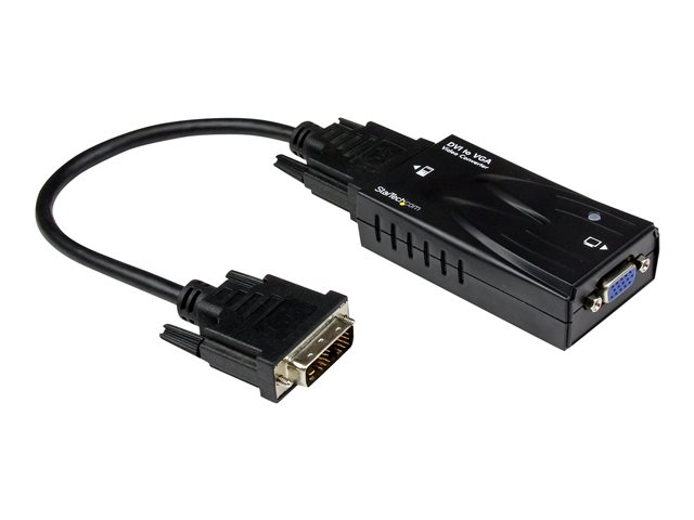 Le convertisseur vidéo haute résolution DVI, référence DVI2VGACON, vers VGA convertit un signal d'entrée vidéo DVI-D (numérique) en une sortie VGA (analogique), épargnant ainsi temps et argent en éliminant la nécessité d'acheter un nouvel écran numérique pour être compatible avec les périphériques ou les cartes vidéo DVI-D. Cet adaptateur compact offre la prise en charge de résolutions jusqu'à 1920x1200, vous permettant ainsi de tirer pleinement profit des capacités de votre moniteur VGA. Réelle solution plug-and-play, l'adaptateur DVI-D vers VGA est facile à installer. Il suffit de connecter le port de sortie DVI-D à l'adaptateur en utilisant le câble DVI inclus, puis de connecter un projecteur ou un moniteur VGA au port VGA situé sur l'adaptateur. Bénéficie de la garantie StarTech.com de 2-ans et de l'assistance technique à vie gratuite.