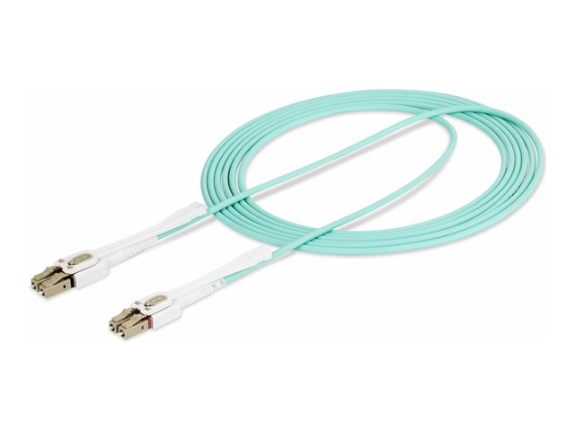 LSZH Fiber Patch Cord (450FBLCLC3PP) - Cordon de raccordement - LC/UPC multimode (M) pour LC/UPC multimode (M) - 3 m - 2.9 mm - fibre optique - duplex - 50 / 125 microns - OM3/OM4 - sans halogène, moulé, débit de transfert de données jusqu'à 100 Gbps - turquoise
