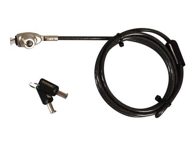 Le câble de sécurité universel à clé 901234 de PORT Connect est compatible avec les appareils ou périphériques munis d'une encoche de sécurité. Sa tête, ajustable à l'aide d'un tournevis, convient aussi bien à une encoche standard, Nano que Noble Wedge. Ce câble est livré avec deux clés utilisateur uniques. Son câble en acier tressé avec gainage PVC transparent assure solidité et sécurité. Conçu à partir d'un alliage de zinc et un plaquage en nickel, le câble est très robuste.