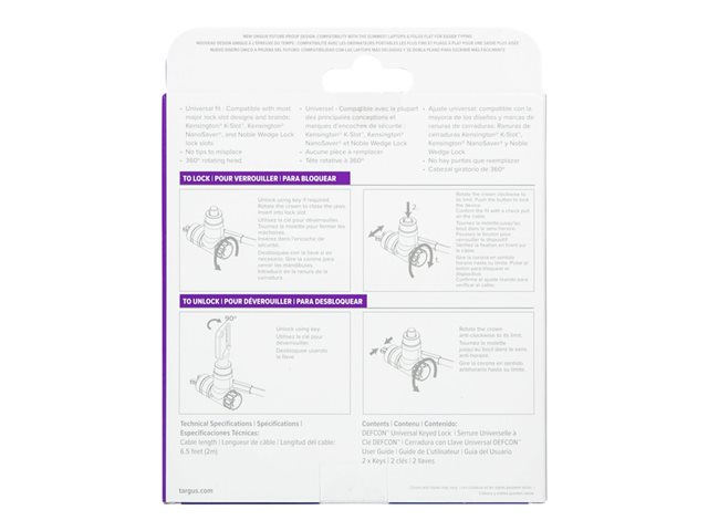 Que vous travailliez à la maison, dans un salon d'aéroport ou dans un café, les verrous pour ordinateurs portables sont indispensables si vous voulez sécuriser votre équipement et vous assurer que personne ne s'empare de vos informations. Le DEFCON Ultimate Universal Keyed Single Head Lock est votre compagnon de sécurité idéal car il est facile à utiliser et à transporter grâce à sa taille fine, ce qui le rend idéal pour les appareils minces. Il se fixe à la plupart des principaux modèles de fentes de verrouillage, comme Kensington Nano, Kensington K-Slot, et même les fentes de verrouillage Noble surdimensionnées en forme de coin, garantissant que votre ordinateur portable, votre station d'accueil ou votre moniteur restent là où ils doivent être.