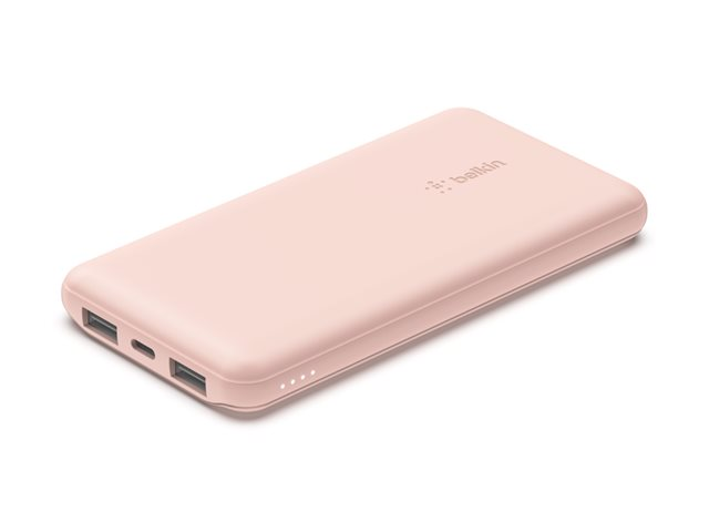 10000 mAh - 18 Watt - 3 connecteurs de sortie (2 x USB, 24 pin USB-C) - rose gold