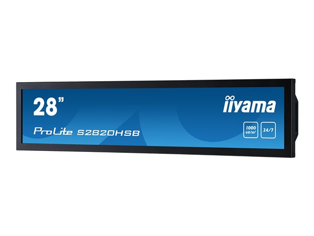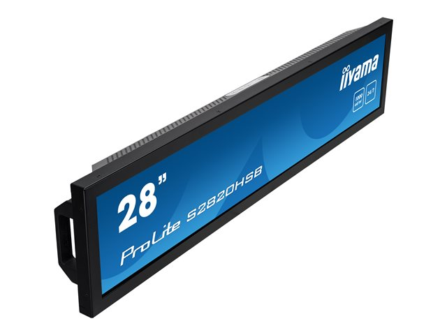 Donnez à vos promotions de vente et à vos affichages en magasin un impact et une visibilité maximale avec le ProLite S2820HSB-B1. Le S2820HSB est un écran d'affichage numérique étiré de 28 pouces (1920 x 360) qui convient parfaitement aux environnements de vente au détail, transport, affaires et secteur de la Santé dans lesquels un affichage 16:9 standard ne convient pas.