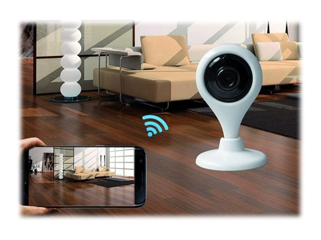 Surveillez votre intérieur de n'importe quel endroit dans le monde sur votre smartphone ou tablette grâce à la caméra Wi-Fi connectée DOM-CAM02.