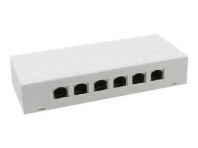 Description du produit MCL Samar boîtier du répartiteur surface réseau Type de produit Boîtier du répartiteur surface réseau - CAT 5e - RJ-45 X 6 Poids 195 g Nombre de ports 6 ports -