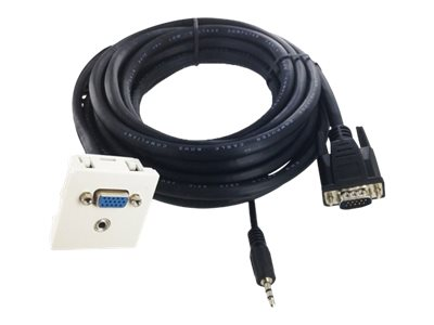 Le plastron équipé d'une prise VGA (HD15) femelle + 1 Jack 3.50 mm femelle. A l'arrière du plastron est raccordé un câble de 0.20 Mts. Livré en sachet individuel.