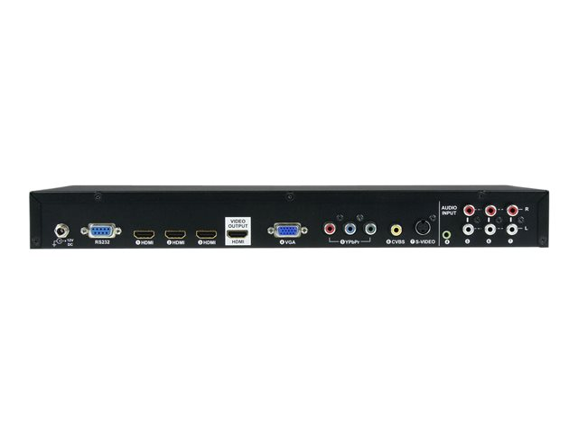 Solution tout-en-un, le processeur-convertisseur vidéo inclut la prise en charge d'une résolution complète à haute définition de 1080p ainsi que de l'audio numérique et analogique. En outre, il est équipé de la télécommande de série RS232 et inclut une télécommande infrarouge pratique permettant de commuter entre les sources vidéo.
