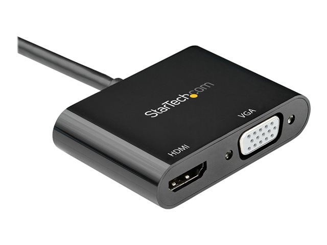 StarTech.com DisplayPort to HDMI VGA Adapter, DisplayPort 1.2 HBR2 to HDMI 2.0 (4K 60Hz) or VGA 1080p Converter Dongle, DP to HDMI or VGA Monitor Adapter, Digital Video Display Adapter - Multiport Video Dongle (DP2VGAHD20) - Adaptateur vidéo - DisplayPort mâle pour HD-15 (VGA), HDMI femelle - 23.2 cm - noir - support 4K