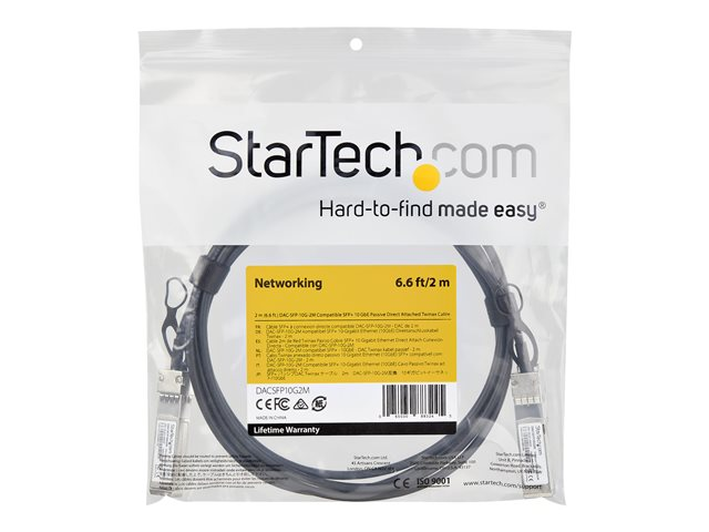 StarTech.com Cable Twinax a fixation directe SFP+ compatible Dell EMC DAC-SFP-10G-2M - 2m - 10 Gbps - Cable en cuivre passif (DACSFP10G2M) - Câble d'attache directe 10GBase - SFP+ (P) verrouillé pour SFP+ (P) verrouillé - 2 m - twinaxial - passif