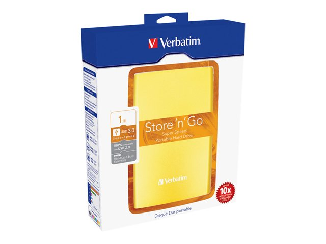 Verbatim Store 'n' Go Portable - Disque dur - 1 To - externe (portable) - 2.5" - USB 3.0 - 5400 tours/min - Jaune ensoleillé 53037