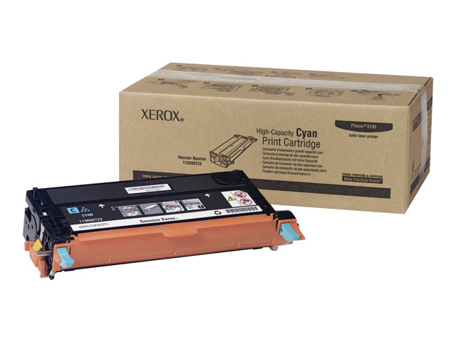 Cartouche de toner Cyan de Grande capacité Xerox Phaser 6180?/?6180MFP (6000 pages)- 113R00723 spécialement formulée et testée pour fournir la meilleure qualité d'image et une impression fiable sur laquelle vous pouvez compter page après page. Les consommables Xerox authentiques ont été conçus pour les équipements Xerox. N'acceptez aucune limite. Les toners compatibles peuvent dégrader les imprimantes Xerox, produire une qualité d'impression médiocre et affaiblir l'intensité des couleurs. Avec plus de 75 ans d'expérience, vous pouvez compter sur les consommables de marque Xerox.