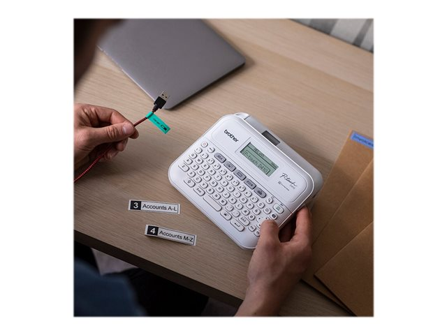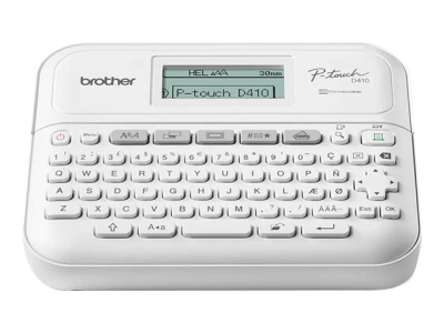 Brother P-Touch PT-D410VP - Étiqueteuse - Noir et blanc - transfert thermique - 18 mm de large - 180 dpi - jusqu'à 20 mm/sec - USB - outil de coupe - impression miroir, impression verticale - blanc PTD410VPYP1