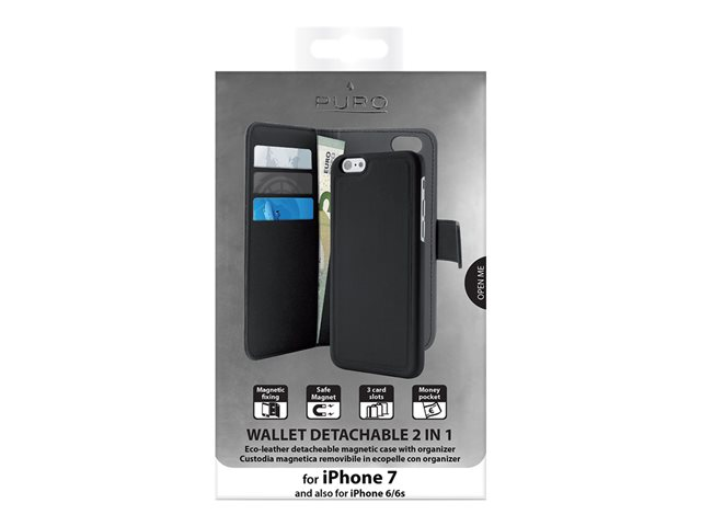 Puro 2in1 - Étui à rabat pour téléphone portable - cuir écologique - noir - pour Apple iPhone 6, 6s, 7, 8 PUROFOLIOMAGNIP7B