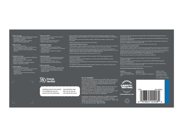 LIGHTSYNC RGB, pilote Pro-G, Blue VO!CE Mic Technology, technologie sans fil LIGHTSPEED
