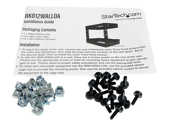 StarTech.com Rack à Cadre Ouvert Noir 8 U - Rack Fixation Murale - Profondeur Réglable - Rack - montable sur mur - noir - 8U - 20"
