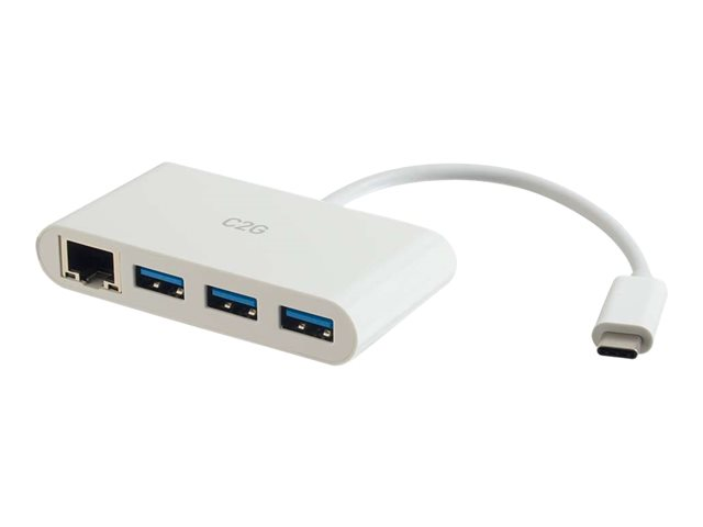 C2G USB C Ethernet and 3 Port USB Hub White - Hub - 3 Ports - Adaptateur réseau - USB-C - Gigabit Ethernet x 1 + USB 3.0 x 3 - blanc