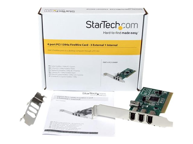 D'un fonctionnement garanti avec les PC et les MAC, la carte PCI FireWire 4 ports bénéficie de la garantie à vie StarTech.com et de l'assistance technique À VIE GRATUITE. De plus, l'adaptateur offre des supports d'encombrement standard et de faible encombrement/demi-hauteur pour s'adapter aux systèmes Slimline ou compacts.