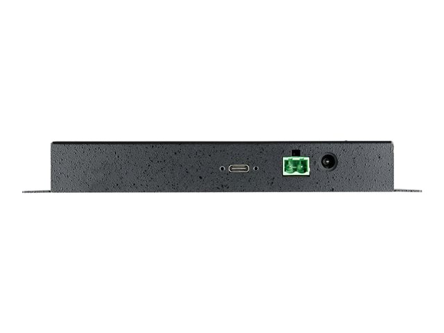 Ce hub USB est doté d''un boîtier métallique robuste avec des oreilles de montage intégrées qui vous permettent de le monter sur n''importe quel mur ou surface. Le hub est doté d''une protection contre les décharges électrostatiques dans l''air (15 kV) et de contact (8 kV), avec protection contre les surtensions de 350 W. Chaque port du hub est doté d''un verrou à vis, évitant ainsi toute déconnexion accidentelle des câbles, et un câble hôte USB-C [[SDLENTITREF[amp]]] USB-A de 1 m doté d''une vis de verrouillage est inclus.