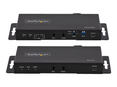 StarTech.com 4K HDMI over Fiber Extender Kit, 4K 60Hz up to 3300ft/1km (Single Mode) or 1000ft/300m (Multimode) LC Fiber Optic, HDR/HDCP, Audio/RS232/IR Extender, HDMI Video Extender - Transmitter and Receiver Kit (ST121HD20FXA2) - Rallonge vidéo/audio/infrarouge/réseau - HDMI - plus de fibre optique - fibre optique - jusqu'à 1 km