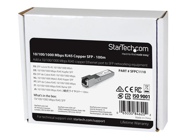 StarTech.com Module de transcepteur SFP Gigabit RJ45 en cuivre compatible Cisco SFP-GE-T - Mini-GBIC avec DDM - Module transmetteur SFP (mini-GBIC) - 1GbE - 1000Base-TX - RJ-45 - jusqu'à 100 m - pour P/N: MCM1110SFP SFPC1110