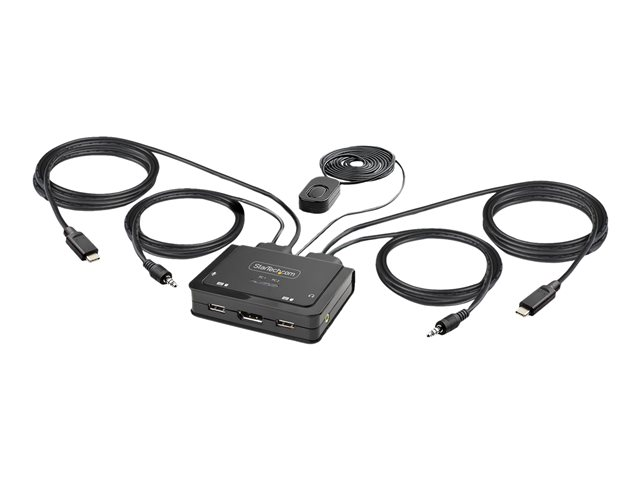 Ce commutateur KVM hybride permet aux utilisateurs de basculer entre un ordinateur de bureau compatible USB Type-A et DisplayPort et un ordinateur portable compatible USB Type-C (DP Alt-Mode), afin de partager un clavier, une souris, des périphériques d'E/S audio et un seul moniteur DisplayPort 4K 60Hz.