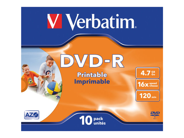 Verbatim - 10 x DVD-R - 4.7 Go 16x - surface imprimable photo large - boîtier CD 43521